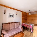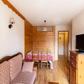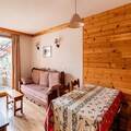 The property, along with its rustic charm and comfort, offers a 38 m² apartment designed to accommodate up to 6 people. The apartment includes a living room with a sofa bed, a separate bedroom with a double bed, and a sleeping area with two single beds. Guests can enjoy a private balcony with views of the slopes and peaks of the resort. In addition, a private ski box is available for storing equipment. While the property does not offer free activities, it provides access to an outdoor heated swimming pool and sauna cabins during the high season. The residence is also pet-friendly, allowing for an additional charge.