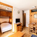 The well-equipped kitchen opens onto a spacious dining area, with modern appliances such as a raclette machine, fondue set, and a stone grill for cooking. In addition, a BBQ is provided for outdoor cooking during warmer months.