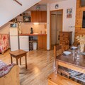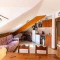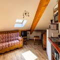 Property, along with its charming alpine atmosphere, offers comfortable accommodation for up to 6 people, ideal for families or small groups. It features a spacious double bedroom with a private balcony and a cozy sleeping area with two single bunk beds. The recently added sofa bed in the living room provides additional sleeping arrangements. The apartment boasts a large living room with two sofas, a connected television, and an electric fireplace, creating a cozy retreat after a day of outdoor activities. Pets are allowed for an additional fee. Guests can also enjoy the heated outdoor swimming pool and saunas, which are available during specific seasons. The property does not provide free activities, but its proximity to local attractions ensures plenty of options for entertainment and exploration.