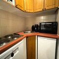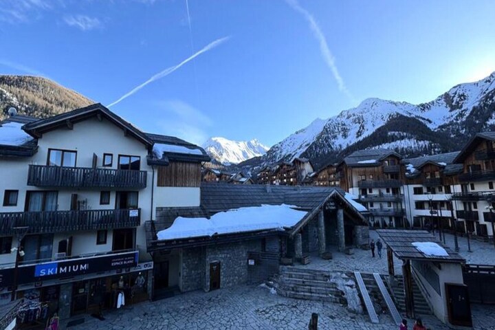 Guests will also benefit from the residence's excellent amenities, including a superb heated outdoor swimming pool The apartment ensures a cozy and well-equipped base for your alpine adventures, with a bathroom featuring a bathtub to unwind after your favorite activities. For added convenience, a deposit is required, and additional services can be arranged as needed.