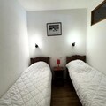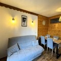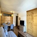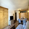 The residence, situated at an altitude of 1,800 meters in the vibrant Bois-Méan area, offers a prime location in the heart of the resort. This 33m² 2-room apartment can accommodate up to 6 people and provides a comfortable stay with modern amenities. The apartment features a south-facing living room with a sofa bed and television, a well-equipped kitchen area including a Senseo coffee maker, toaster, mini-oven, and dishwasher.