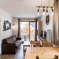 Property along with a prime location offers a comfortable and compact space for up to 4 guests. The apartment includes a living room with a sofa bed that accommodates two people, and a mountain corner with two single bunk beds separated by a curtain. A south-facing balcony adds to the appeal, providing views of the surrounding area. For added convenience, pets are allowed with a supplement, and additional services such as Wi-Fi rental and linen can be requested. Housekeeping is available on request, ensuring flexibility for guests during their stay.