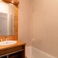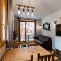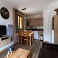 The apartment features an equipped kitchen area, providing guests with the option to prepare meals at their convenience. The kitchen includes all the essentials for self-catering, and the bathroom is complete with a shower and separate toilet. Additional services such as the rental of bath linens, bed sheets, and tea towels are available upon request, ensuring a fully tailored experience. With convenient heating and a well-designed layout, this apartment ensures a comfortable stay in the mountains.