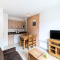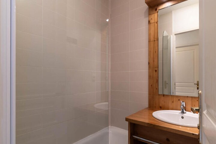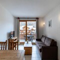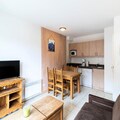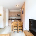 This 33 m², north-facing apartment is designed for a peaceful stay, slightly set back from the resort's central square. It features an entrance with storage, a cozy living room with a convertible sofa bed, a dining area with a fully equipped kitchen, and a separate bedroom with a double bed. The apartment can comfortably accommodate up to four people. A bathroom with a bathtub and a balcony add to the apartment's appeal, offering a perfect spot to enjoy breakfast or relax.