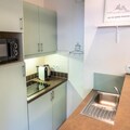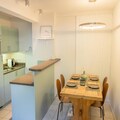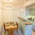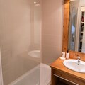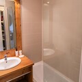 The apartment features a fully equipped kitchen, allowing guests to prepare their own meals. The kitchen includes essential appliances such as a stovetop, oven, and refrigerator, as well as ample storage space. The bathroom includes a bathtub, perfect for unwinding after an active day. Storage space in the entrance helps to keep the living area tidy and organized. The residence’s seasonal swimming pool adds to the range of activities available, offering a relaxing space for non-skiers or those wishing to take a break from the slopes. This well-appointed apartment provides everything needed for a comfortable and enjoyable stay, whether for winter sports or summer adventures.