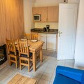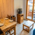Property, along with its inviting features, provides a comfortable and well-equipped 2-room apartment that accommodates up to 4 people. The apartment includes a bedroom with a 140x190cm double bed, and a living room with a 140x190cm convertible sofa, making it ideal for small families or groups. It offers modern conveniences such as a television in each room, a coffee pod machine, and an electric fireplace. Guests can also enjoy a private balcony with garden furniture, providing scenic views of the Mazelière valley and larch forest. For convenience, there is private parking and a secure ski locker. Free activities include access to the on-site heated indoor swimming pool, open seasonally. Pets are not allowed, and parking spaces can be rented if needed.