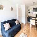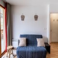 This 30m² east-facing apartment offers a peaceful and comfortable retreat, ideal for up to 4 people. It features a spacious living room with a fully equipped kitchen, perfect for preparing meals after a day on the slopes. Sleeping arrangements include a bedroom with a bunk bed and a 2-person sofa bed, plus an additional sofa bed in the living room. Guests can enjoy a variety of amenities, including a heated indoor swimming pool with a whirlpool and an outdoor terrace for sunbathing. The pool is open seasonally, with availability in both summer (June 29 – August 31, 2024) and winter (December 7, 2024 – April 12, 2025).