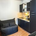 This cozy 24 m² apartment, designed for 4 people, faces west and provides a peaceful retreat after a day of adventure. The living room features an electric fireplace, a 2-seater convertible sofa, board games, and a well-equipped kitchen. A mountain corner with 2 single bunk beds ensures restful nights, while the bathroom with a bathtub offers a relaxing experience. The apartment also includes a balcony to enjoy sunny breakfasts or an evening drink with friends. For added convenience, a private ski box is provided for your equipment.
