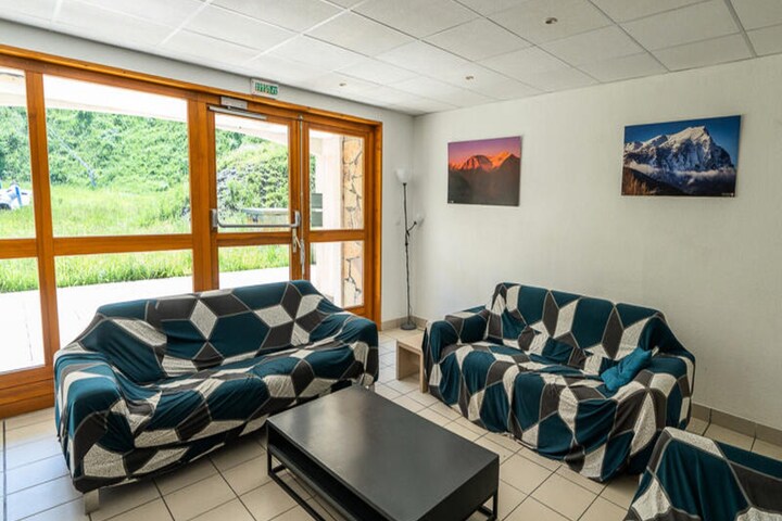 The property, along with its inviting atmosphere, offers a comfortable 2-room apartment that accommodates up to 4 people. The apartment features a cozy living room with a 2-seater convertible sofa bed, perfect for additional guests. The bedroom is equipped with a double bed, and the apartment also includes a balcony with garden furniture, providing views of the slopes. A private ski box is available for storing ski equipment. Although pets are not mentioned, the apartment is designed to offer a relaxed stay with essential amenities. Guests can enjoy the heated indoor swimming pool and whirlpool, which are available during the ski season, as well as a bakery service for fresh bread and pastries in the morning.