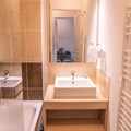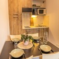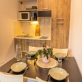 The apartment is equipped with a modern and fully functional kitchen, including a dishwasher, microwave, and Dolce Gusto coffee maker, allowing guests to prepare meals with ease. For those seeking relaxation, the residence offers a heated indoor swimming pool with a whirlpool, a solarium, and an outdoor terrace for enjoying the sun. There is also a bakery within the residence where guests can order fresh bread and pastries. Laundry facilities are available on-site for added convenience. Heating is included, ensuring comfort throughout the stay.