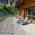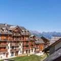 Property, along with its spacious 50 m² layout, offers a comfortable stay for families or small groups, accommodating up to 6 people. The apartment features two separate bedrooms, one with a double bed and the other with two single bunk beds, ideal for both adults and children. The living room includes a 2-seater convertible sofa, perfect for extra sleeping space. A west-facing balcony allows guests to enjoy meals or relax while taking in mountain views. Pets are not permitted, but guests can enjoy additional services like the option to order fresh bread and pastries daily from the communal lounge. A private ski locker is provided to store winter sports equipment. The residence also offers a heated indoor swimming pool and whirlpool, available seasonally, enhancing the overall stay with opportunities for relaxation after a day on the slopes.