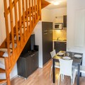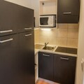 The apartment is equipped with a fully functional kitchen area, including modern appliances such as an oven, refrigerator, and stovetop, allowing guests to prepare their own meals during their stay. The living space is designed for comfort and functionality, with plenty of storage and a spacious bathroom featuring a bathtub, hair dryer, and ample storage. The property is heated, ensuring a cozy atmosphere throughout the winter season. Guests also have the added convenience of ordering breakfast items directly from the residence, further enhancing the stay. With all these amenities, the property provides a well-rounded, family-friendly base for a ski holiday.