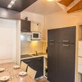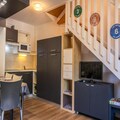 This charming 35 m² duplex, located on the 4th floor with elevator access, offers a South-West exposure with stunning mountain views from the balcony. The living room features a comfortable sofa bed, while upstairs you will find a bedroom with a double bed and another with bunk beds, perfect for families. The modern kitchen is ideal for preparing a fondue or casual meals, and the bathroom offers a relaxing bath after a day on the slopes.