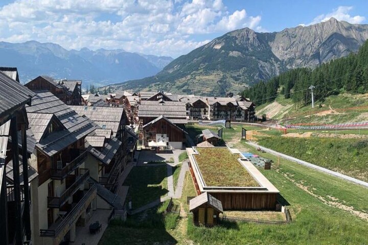 Perfectly located, the residence offers direct access to the slopes, making it especially convenient for families with young children. It is situated just above the tourist office, ski lift ticket offices, and the ESF des Orres 1800, with shops, equipment rentals, and restaurants located nearby or even on-site.