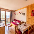 Property, along with its inviting and functional design, offers a spacious 38m² apartment that can accommodate up to 6 people. It features a living room with a pull-out sofa bed, a dining area, and a fully equipped kitchen. The apartment includes two bedrooms: one with a double bed and another with two single beds that can be combined to create a double. A private ski box provides convenient access to the slopes, and guests can also enjoy a private underground parking space. The apartment has a balcony and comes with thoughtful amenities such as a raclette machine, a crepe maker, and a television in the living room. While pets are not mentioned, the apartment is ideal for family or group stays, offering a comfortable base for winter and summer activities.