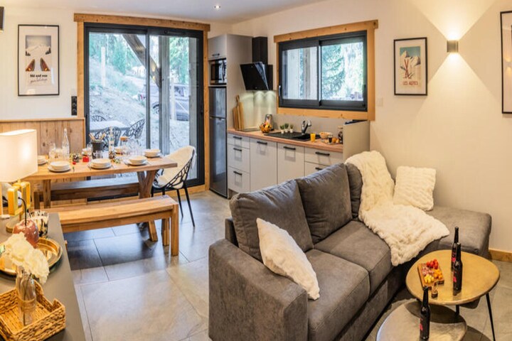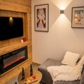 A property with a luxurious and modern design, this well-appointed holiday home offers accommodation for up to 8 guests. Featuring two double bedrooms with comfortable 160 x 200 cm beds and a dedicated sleeping area with 4 single bunk beds designed for children, this property combines functionality and style. Guests can relax in the welcoming living room, which opens onto a sunny south-facing terrace with views of La Mazelière. The living space includes a connected television (Netflix, Prime Video, YouTube), an electric fireplace, and very high-speed internet. The property also offers para-hotel services such as bed linen, end-of-stay cleaning, and beds made on arrival, ensuring a smooth and stress-free experience. Parking is convenient with three spaces available directly in front of the chalet, two of which are equipped with GreenUp sockets for electric or hybrid vehicles.