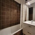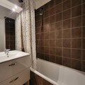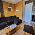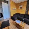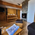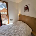 This charming duplex apartment, designed for up to 6 guests, is located on the first floor with direct access to the pool via an elevator. On the ground floor, you’ll find a cozy bedroom with a double bed and a private balcony with an east-facing view. Upstairs, the mountain-style living room includes a sofa bed, a fully equipped kitchen, and a dining table for six, perfect for family meals. The balcony offers a 180° view of the resort and surrounding mountains. The apartment also features a bathroom with a bathtub, a separate toilet, and a sleeping area with two single bunk beds.