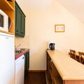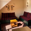 This cozy apartment offers a comfortable stay for up to four people, with one bedroom featuring a double bed and a cabin area with two single bunk beds. The living room includes two single sofa beds, one with a trundle bed, ensuring ample sleeping space. The apartment is pet-friendly with an additional charge, allowing you to bring your furry companions. Guests can enjoy the convenience of free Wi-Fi, while linens and towels are available upon request for an extra fee. A separate toilet and two bathrooms provide added comfort for your stay.