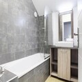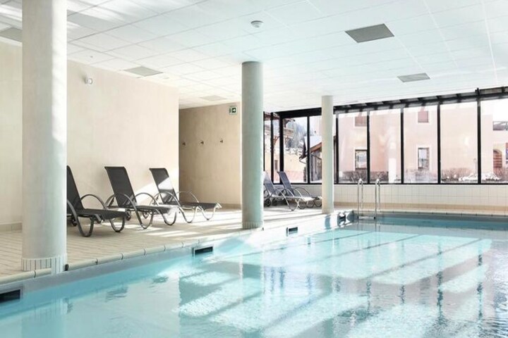 The apartment comes with modern amenities like a heated indoor swimming pool, a hammam, and free Wi-Fi. It also features a bathroom with a shower and separate WC. Additional services include bed linen and bathroom towels, available for a change at an extra charge, and a baby kit upon request. The property is accessible for people with reduced mobility, with some accommodations offering suitable adjustments.