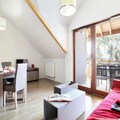This luxurious holiday apartment is located in Serre-Chevalier, offering a relaxing mountain getaway with accommodation for up to 8 guests. The apartment features a living room with a pull-out sofa bed, a fully equipped kitchen, and three separate sleeping areas: a bedroom with a double bed, another bedroom with two single beds, and a cabin with two bunk beds. The property is pet-friendly, with additional charges for pets, and offers free Wi-Fi and parking, including the option for covered parking.