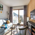 The residence is thoughtfully designed to cater to your every need. Unwind in the Aquarelaxation area, exclusively for adults, where a spa, hammam, and sauna await to soothe your senses after an exhilarating day on the slopes. For those seeking extra indulgence, a treatment room offers massages and beauty therapies for a supplemental fee. Families will appreciate the variety of Kids’ Clubs available for children aged 4 to 17, ensuring entertainment and care throughout the day. The residence also features a heated outdoor swimming pool, free Wi-Fi, and cozy accommodations, including a living room with a sofa bed, a fully equipped kitchenette, and two bedrooms with flexible bedding options.