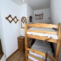Inside, the 56 m² apartment is designed for comfort and practicality, accommodating up to six guests. The living room features two pull-out sofa beds, a TV, and direct access to the balcony, creating a warm and inviting space to relax after a day on the slopes. The fully equipped kitchenette includes a ceramic hob, refrigerator, dishwasher, oven, and microwave, making it easy to prepare hearty meals. The sleeping arrangements are thoughtfully planned with a bedroom offering two single beds that can be joined together and another bedroom with two single bunk beds. A bathroom with a washing machine and a separate toilet add convenience to your stay.