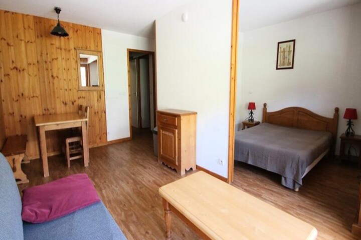 High above the picturesque valley of Puy Saint Vincent, this charming apartment invites you to experience the magic of the French Alps. Imagine waking up to crisp mountain air and stepping out onto your private balcony, where the sun rises over snow-capped peaks and lush green slopes. Whether you’re seeking a winter wonderland or a summer retreat, this cozy haven offers the perfect setting for unforgettable alpine adventures. \n\nDesigned for comfort and convenience, the apartment accommodates up to four guests with a thoughtfully arranged layout. The bedroom features a comfortable double bed, while the living room offers a pull-out sofa bed for additional sleeping space. A well-equipped kitchen, complete with a microwave, dishwasher, ceramic hob, and coffee maker, makes it easy to prepare meals after a day of exploring. The separate bathroom and toilet ensure privacy, and modern amenities like free WiFi and a flat-screen TV provide all the comforts of home. \n\nSituated in the La Dame Blanche residence, guests enjoy direct access to the ski slopes, making it a dream destination for winter sports enthusiasts. On-site facilities include a heated outdoor pool (open in summer), a sauna, and a coin-operated laundromat. The residence also boasts a restaurant, snack bar, and bakery, along with a ski rental shop for added convenience. \n\nWhether you’re here to ski, hike, or simply relax, this apartment offers a warm and welcoming base for your alpine escape. With breathtaking views, modern amenities, and easy access to local attractions, it’s the perfect choice for couples or small families looking to immerse themselves in the beauty of the mountains.