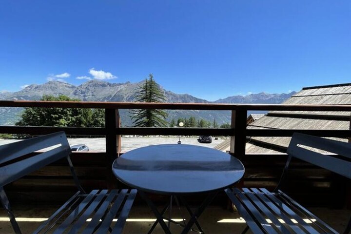 High above the serene slopes of Puy Saint Vincent 1800, this charming apartment offers a perfect blend of comfort and convenience for your alpine getaway. Imagine waking up to crisp mountain air and stepping directly onto the ski slopes from your residence, where every detail has been designed to enhance your holiday experience. Whether you're seeking adventure or relaxation, this cozy retreat is ideal for families and friends alike. \n\nThe apartment is thoughtfully furnished to accommodate up to six guests, featuring a well-equipped kitchen with modern appliances, including a microwave, dishwasher, and a Raclette grill for authentic culinary moments. The living room invites you to unwind with its pull-out sofa bed, flat-screen TV, and a balcony offering stunning views of the surrounding peaks. With a master bedroom, a cabin bedroom, and a bathroom with a heated towel rail, every corner of this space exudes warmth and practicality. \n\nLocated in the prestigious La Dame Blanche residence, you'll find everything you need at your fingertips. A heated outdoor pool (open in summer), a sauna, and essential amenities like a bakery, restaurant, and ski rental shop are just steps away. Free WiFi keeps you connected, while optional services like linen and towel rentals ensure a hassle-free stay. \n\nWhether you're gliding down pristine slopes in winter or exploring lush alpine trails in summer, this apartment is your gateway to unforgettable moments in the French Alps. Book your stay now and create memories that will last a lifetime.