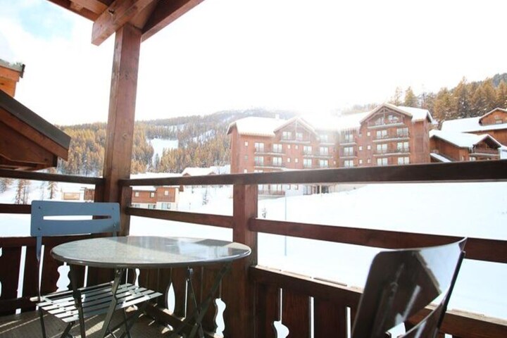 In the heart of the picturesque French Alps, this charming two-bedroom apartment offers a delightful retreat for families and groups of up to eight people. Located in the upper part of Puy Saint Vincent 1800, the residence La Dame Blanche combines modern comfort with direct access to the ski slopes, making it an ideal choice for winter sports enthusiasts and nature lovers alike. Imagine waking up to breathtaking mountain views, stepping onto your private balcony to enjoy the crisp alpine air, and heading straight into a day of adventure. Whether you’re here for skiing or simply to unwind, this property promises an unforgettable stay. \n\nInside, the apartment is thoughtfully designed to ensure maximum comfort and convenience. The fully equipped kitchen includes a microwave, dishwasher, ceramic hob, refrigerator, toaster, kettle, and coffee maker, perfect for preparing hearty meals after a day on the slopes. The living room features a pull-out sofa bed, a dining table, and a flat-screen TV, creating a cozy space for relaxation. Sleeping arrangements include a double bedroom, an alcove with bunk beds, and an upstairs bedroom with two single beds and an adjoining shower room. Additional amenities such as free WiFi and a separate bathroom and toilet add to the ease of your stay. \n\nThe residence itself boasts fantastic facilities, including a heated outdoor swimming pool (open in summer), a sauna available by reservation, and a coin-operated laundromat. At the foot of the residence, you’ll find a restaurant, snack bar, bakery, and essential grocery store, as well as a ski equipment rental shop for added convenience. For those arriving by car, covered parking is available for rent. \n\nWhether you’re seeking thrilling ski adventures or peaceful summer hikes, this apartment places you in the perfect location to explore the beauty of the French Alps. With its blend of comfort, convenience, and stunning surroundings, La Dame Blanche is your gateway to a truly memorable alpine escape.