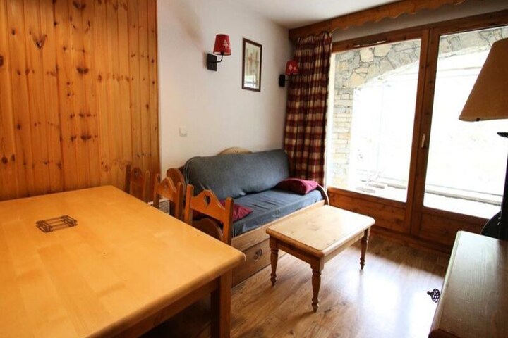 High above the serene valley of Puy Saint Vincent, this charming apartment in the La Dame Blanche residence offers a perfect blend of alpine comfort and modern amenities. Imagine waking up to the crisp mountain air, stepping onto your private balcony with a warm coffee in hand, and gazing out at the snow-dusted peaks that surround you. Whether you're here for the thrill of skiing or the tranquility of summer hikes, this retreat promises an unforgettable escape in the heart of the French Alps. \n\nInside, the 34m² apartment is thoughtfully designed to accommodate up to six guests. The cozy living room features a pull-out sofa bed, a dining table, and a flat-screen TV, while the fully equipped kitchen invites you to prepare hearty meals after a day of adventure. The sleeping arrangements include a serene double bedroom, a cabin room with two single beds, and a sofa bed in the living area, all with plush duvets and pillows for a restful night. A separate bathroom and WC add to the convenience, ensuring a comfortable stay for families and small groups alike.\n\nThe residence itself is a haven of relaxation and activity. With direct access to the ski slopes, you can hit the powdery trails straight from your doorstep. In summer, the heated outdoor pool becomes a refreshing oasis, while the sauna offers a cozy retreat for winter evenings. On-site amenities include a restaurant, snack bar, bakery, and a ski rental shop, making it easy to enjoy your holiday without venturing far. \n\nWhether you're exploring the breathtaking trails of the Écrins National Park, indulging in local delicacies at nearby eateries, or simply soaking in the alpine ambiance, this apartment is your gateway to the best of Puy Saint Vincent. Book your stay and create memories that will last a lifetime.