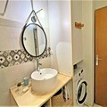 - An entrance with cupboard, the living room (No TV) gives access to the balcony, it opens onto a kitchen area with dishwasher, refrigerator, 4 induction hobs, oven, microwave, "Senseo" coffee maker, waffle maker, kettle ..