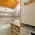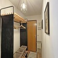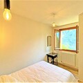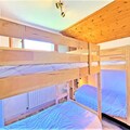 A bathroom with a washing machine and separate toilet. A double bedroom with a 140cm bed and cupboard, a second bedroom with 2 90cm bunk beds and 2 cupboards. The apartment has a ski locker and a parking space.