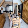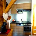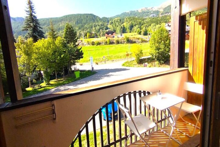 The well-equipped kitchen includes a refrigerator, oven, induction hob, microwave, Krups Dolce Gusto coffee maker, and an extractor hood, allowing guests to prepare their own meals. The living room is equipped with a TV for relaxation after a day on the slopes. The studio also features a pleasant south-facing balcony where guests can enjoy meals or unwind in the sun.