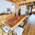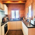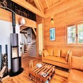 Large living room with cathedral living room, wood stove, dining room and a kitchen equipped with fridge/freezer, induction hob, oven, dishwasher, microwave, toaster, kettle, Nespresso Magimix coffee maker, etc. .