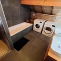 Upstairs: 1 double bedroom with 160 cm bed, a bathroom with bathtub and walk-in shower, a washing machine and dryer are available.