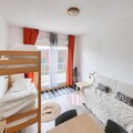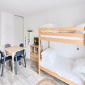 This charming ground-floor studio offers a cozy retreat for up to six guests. The living room features a sofa bed, a trundle bed, and bunk beds, making it ideal for families or small groups. The apartment is pet-friendly with an optional supplement, allowing your furry friend to join the adventure. Wi-Fi is included, and parking is available for your convenience. End-of-stay cleaning is mandatory, with additional services offered upon request.
