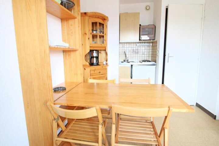 High above the picturesque Vallouise valley, this charming apartment offers a cozy retreat for couples or small groups seeking a tranquil alpine escape. With direct ski-in/ski-out access, you can step out of the residence and onto the slopes, making it an ideal choice for winter sports enthusiasts. The breathtaking views from the 6th floor provide a serene backdrop for your mountain getaway, whether you're enjoying the snowy landscapes or the lush greenery of summer. \n\nThoughtfully designed for up to three guests, the apartment features a compact yet functional layout. The entrance opens to a sleeping alcove with bunk beds, perfect for children or friends, and a bathroom with a shower and toilet. Beyond the dividing door, the living area invites relaxation with a comfortable sofa bed, a dining space, and a kitchenette equipped with a mini-oven for preparing simple meals. Free condominium WiFi ensures you stay connected while enjoying the peace of the mountains. \n\nThe location is unbeatable for exploring the region, with ski lifts and trails just steps away. In winter, the slopes beckon for skiing and snowboarding, while summer transforms the area into a haven for hikers, cyclists, and nature lovers. The charming village of Vallouise, with its traditional alpine architecture and local shops, is a short distance away, offering a taste of authentic French mountain life. \n\nWhether you're here to carve through fresh powder or bask in the tranquility of the Alps, this apartment provides the perfect base for unforgettable adventures. Book your stay today and immerse yourself in the beauty of the Vallouise valley.