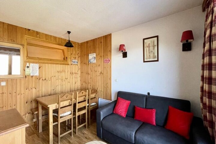 Imagine waking up to the crisp mountain air and stepping out onto your private terrace, where the breathtaking views of the French Alps unfold before you. This charming and thoughtfully designed apartment in the Dame Blanche residence offers an idyllic retreat for up to six guests, blending modern comfort with alpine charm. Whether you're here to ski the pristine slopes or simply relax in the serene surroundings, this property promises an unforgettable escape. \n\nInside, the 34m² apartment is a haven of comfort and convenience. The living room, featuring a cozy new sofa bed, opens directly onto the terrace, inviting you to soak in the stunning vistas. The fully equipped kitchen, complete with a dishwasher, ceramic hob, microwave, and more, makes meal preparation a breeze. The sleeping arrangements are perfect for families or small groups, with a double bed in the main bedroom and two single beds in a cozy alcove. A separate bathroom and toilet ensure privacy and ease during your stay. \n\nThe residence offers fantastic amenities, including a heated outdoor swimming pool available in summer and a sauna for ultimate relaxation. Ski enthusiasts will appreciate the ski locker with direct slope access, making it effortless to hit the pistes. For added convenience, free WiFi, a coin-operated laundromat, and optional services like linen and towel rentals are available. \n\nLocated in the heart of the Alps, this property is a gateway to year-round adventure. In winter, enjoy world-class skiing and snowboarding, while summer brings opportunities for hiking, cycling, and exploring the stunning natural landscapes. Whether you're seeking adrenaline-filled days or tranquil evenings under the alpine sky, this apartment is your perfect home away from home.