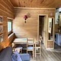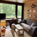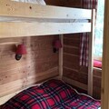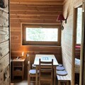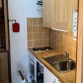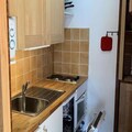 The living room features a convertible sofa, while the fully equipped separate kitchen is perfect for preparing meals after a day on the slopes. The apartment includes one bedroom with a double bed and a single bed above, providing ample space for up to five guests. It also has a bathroom and a separate toilet.