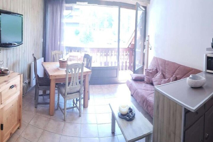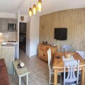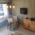 This charming 2-bedroom apartment is the perfect retreat for a mountain getaway in the Vars Risoul area. Located at the foot of the slopes, the residence offers direct access to skiing and is just a short distance from local amenities. The apartment comfortably accommodates up to 7 people, featuring a cozy living room with a convertible sofa bed, a fully equipped kitchen for preparing meals, and a double bedroom with cupboards and a TV. The mountain corner includes a bunk bed and a double bed, ideal for families or small groups.