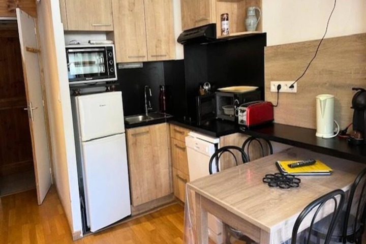 This charming studio cabin, located in a convenient residence near the Vars Risoul area, offers a comfortable and practical setting for a mountain getaway. The apartment features a living room with a convertible sofa bed (160 cm), an open, fully equipped kitchen, and a mountain corner with bunk beds. Guests can enjoy a balcony with views, perfect for relaxing after a day on the slopes. The studio can accommodate up to 4 people and includes a dedicated parking space. The property holds a 3-star classification, making it a great choice for those seeking a well-located and functional space for their stay.