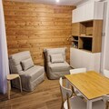 Boost your mountain vacation with this brand new T1 apartment in the Vars resort, ideally located close to the slopes, ESF, and the "Ski Soleil" shopping center, as well as a bakery. The 30 m² apartment is designed to accommodate up to 3 people comfortably, featuring a living room with a dining area and two convertible armchairs (each functioning as single beds, 80x190 cm).