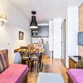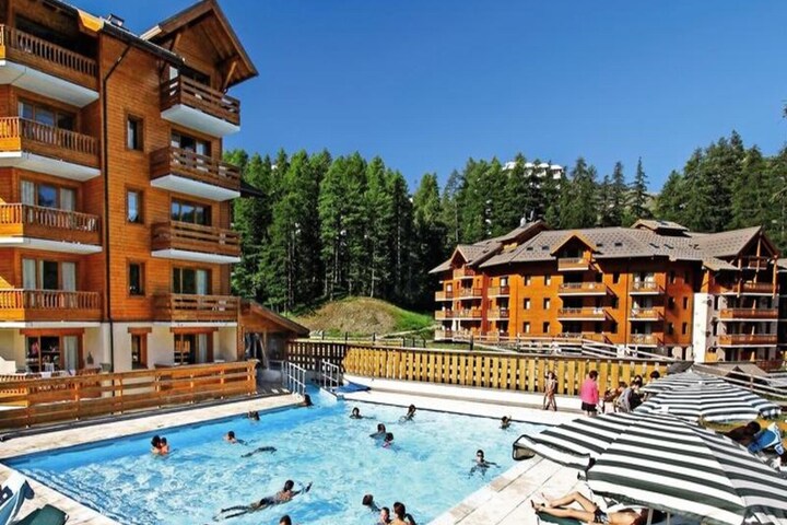Property along with its cozy, Savoyard-style ambiance offers a comfortable and convenient vacation stay. This 2-room apartment, designed to accommodate up to 5 guests, includes one bedroom, a living room with a kitchenette, and a bathroom with a separate WC. The living area is well-equipped, providing a welcoming space for relaxation, while the kitchenette allows guests to prepare their own meals. The apartment’s facilities cater to families and small groups, with a maximum capacity of five. Although cleaning is extra and must be completed by the customer or arranged for a fee, the residence provides essential services such as bed linen and maintenance kits, included in the booking. A heated outdoor swimming pool is available during the summer months, adding an extra element of relaxation to your stay.