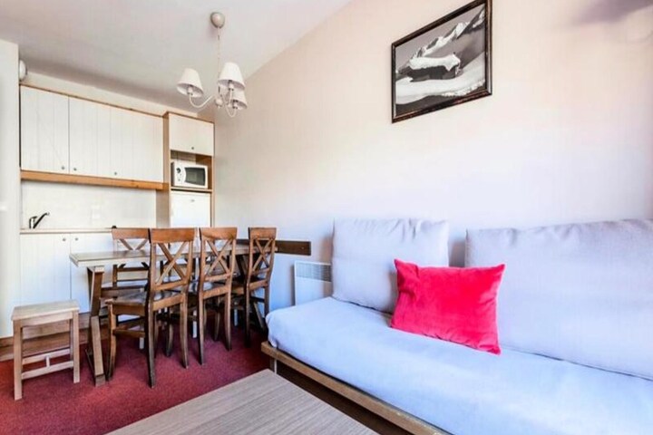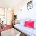 This property, along with its charming design, offers a 38 m², 3-room apartment ideal for up to 7 guests. It features a living room with a comfortable sofa, two bedrooms, and a kitchenette, as well as a bathroom with a separate WC. Guests can enjoy a west-facing balcony with scenic views. The residence offers an outdoor heated swimming pool, open from July 6 to September 1, and pets are allowed depending on the accommodation. Additional services such as baby kits, linen rental, and daily housekeeping are available at an extra charge. End-of-stay cleaning is mandatory, and can be arranged on arrival. Wifi access is available for a fee and is subject to availability.