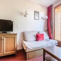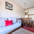 The property, along with its charming and spacious design, offers a comfortable stay for up to six people. The living room includes two sofa beds, one of which features a pull-out bed, while the two bedrooms are furnished with a double bed and two single beds, respectively. Guests can enjoy a furnished balcony with deckchairs and views of the slopes. The property is pet-friendly, with pets allowed for an additional charge. Other amenities include a television and a ski locker for added convenience. Optional services such as baby kits, bed linens, bathroom linens, and end-of-stay cleaning are available for an extra charge, with the flexibility of daily housekeeping upon request.