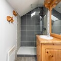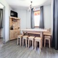 Located in the heart of the Hautes-Alpes resort and nestled within the Forêt Blanche ski area, the property offers a charming, wood-structured accommodation with a ski-in, ski-out access just 200m from the resort center. This beautifully refurbished property features spacious and cozy apartments with a balcony offering views of the slopes. The apartment includes a cozy living room with 2 sofas (one with a sofa bed), a dining area with a solid wood table, 3 bedrooms (including one with a double bed and adjoining shower room, one with 2 single beds, and one with 2 bunk beds), and 3 modern bathrooms. The fully equipped kitchen area opens to the living space, creating a warm and functional environment for families or groups.