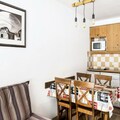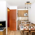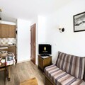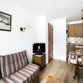 The apartment includes a well-equipped kitchen area open to the living room, providing guests with the flexibility to prepare meals during their stay. The bathroom includes a bathtub, and there is a separate toilet. The property also features ample storage space, a ski locker, and TV access (depending on the apartment). While Wi-Fi is available for an additional charge, the residence offers various leisure facilities to enhance the stay, including the outdoor heated swimming pool. Additionally, the apartment is part of Maeva Home Selection, ensuring it meets high standards for comfort and quality.
