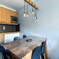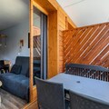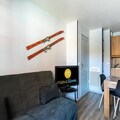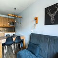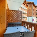Located in the heart of the Hautes-Alpes resort, **Résidence L'Albane** offers a prime location with direct access to the White Forest ski area slopes. This charming residence features traditional wooden architecture and is conveniently close to shops and a nursery. During the summer months, guests can enjoy the outdoor heated swimming pool, open from July 6th to September 1st.The 31 m² apartment is modern and stylish, featuring a living room with two double sofa beds, accommodating up to four people, and a TV for entertainment. The dining area is equipped with a table, five chairs, and two stools. The fully equipped open kitchen seamlessly connects to the living space. The bedroom includes a double bed and an additional TV for extra comfort. The bathroom features a bathtub, and a separate toilet ensures convenience. A furnished balcony offers stunning mountain views.