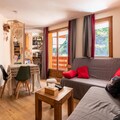 This 37 m² 2-room apartment, situated on the 3rd floor, is perfect for up to 5 guests. It includes a spacious living room, a fully equipped kitchen, a cozy bedroom with a double bed, and a separate bathroom and WC. A balcony offers a peaceful view of the surrounding forest, and the apartment provides direct access to the slopes for easy skiing and snowboarding. A wired internet box, installed in early 2023, ensures guests stay connected throughout their stay.