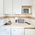 The apartment's kitchen area is open to the living room, equipped with basic appliances for preparing meals, enhancing the apartment's functionality. The bathroom is fitted with a bathtub and WC. For convenience, there is additional storage space throughout the apartment. A small television is provided for entertainment. Guests will enjoy the tree-lined views from the balcony, which adds a serene touch to the stay.
